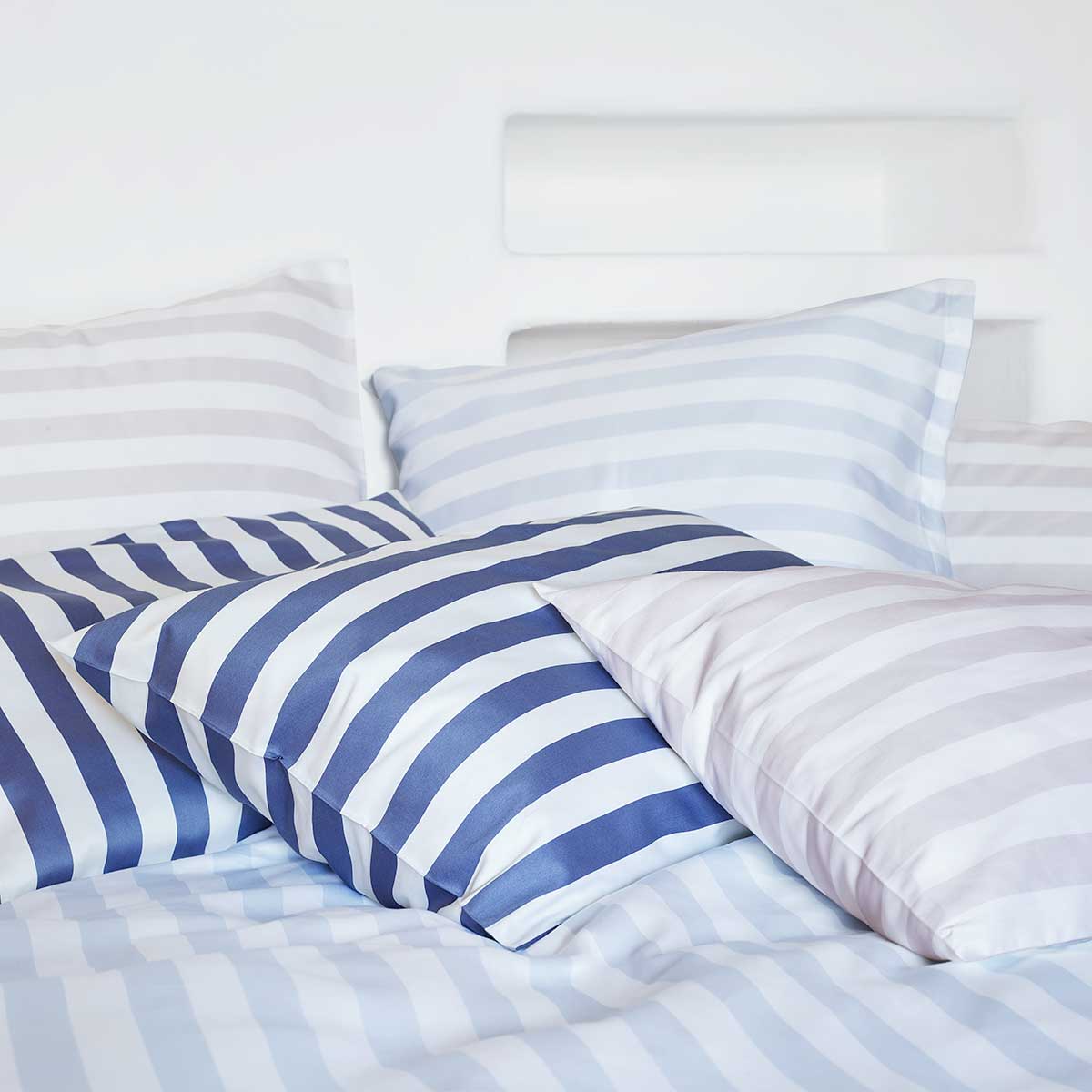 ARIS geht als beliebter Schlossberg-Klassiker für Sie neue Wege - und das in Farbe wie in Qualität: Maritimes Blau-Weiss, zartes Helllblau-Weiss sowie elegantes Beige-Weiss setzt in Blockstreifen und je nach Wahl leise bis laute Akzente in ihrem Schlafzimmer. Und das jedoch immer nachhaltig in Bio-Baumwoll-Qualität. Kombinieren können Sie das zeitlose Streifen-Muster wunderbar mit den Schlossberg-typischen Blumen-Bettwäsche-Designs oder auch passenden Unifarben, je nach Jahreszeit, Stil oder auch einfach Stimmung.