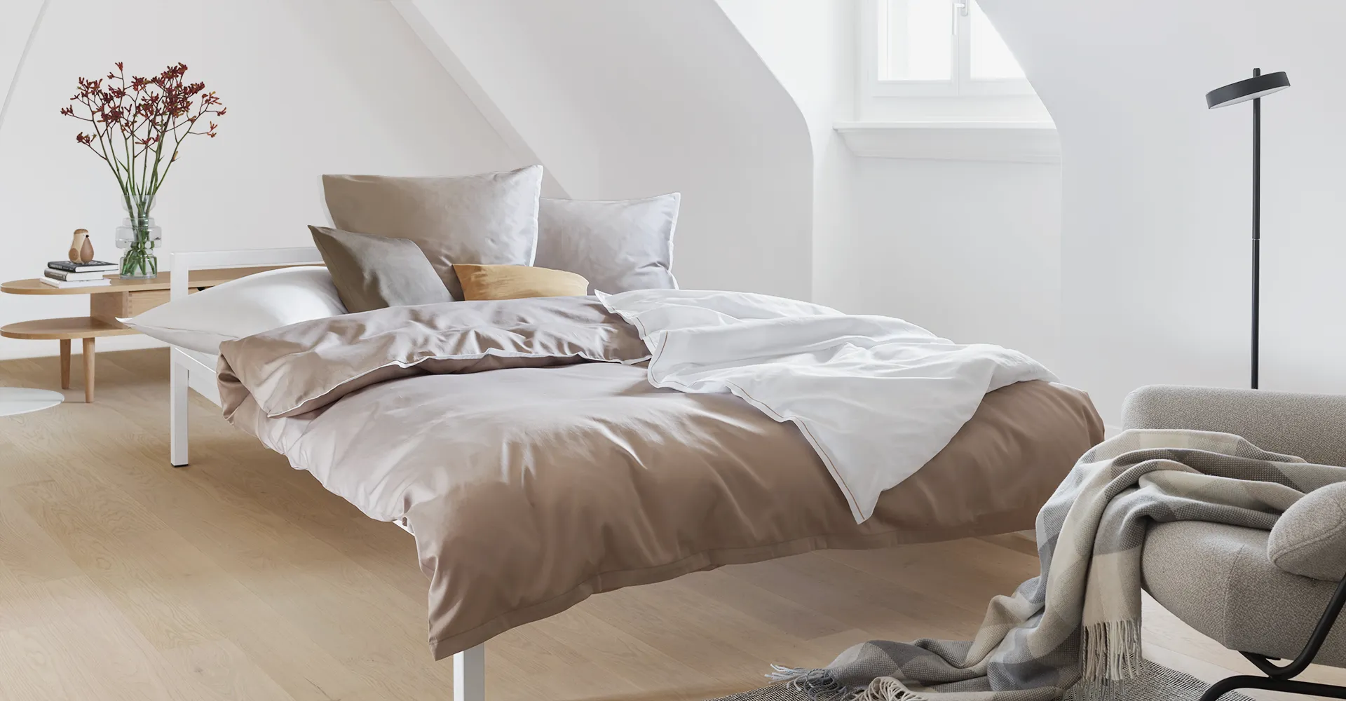 Langjährige Freude beginnt bereits bei der täglichen Pflege Ihrer Schlossberg Bettwäsche: Bezogene Bettdecke täglich locker aufschütteln sowie das Zimmer lüften, damit die während des Schlafens aufgenommene Feuchtigkeit wieder abgegeben werden kann.