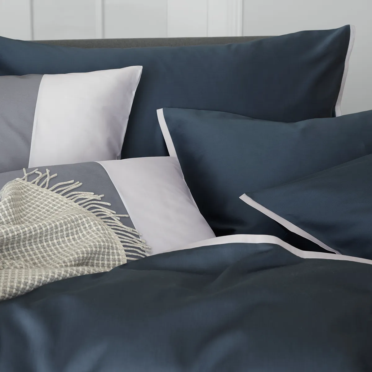 Die Bettwäsche CLARK ist ein sportiver Basic mit raffinierten Details: Der Kissenbezug zeigt einen seitlichen Stehsaum, farblich abgesetzt in ardoise oder sable. Beim Duvetbezug ist der farbige Stehsaum oben platziert und sorgt für einen zeitlosen Look in feinstem Satin Noblesse.