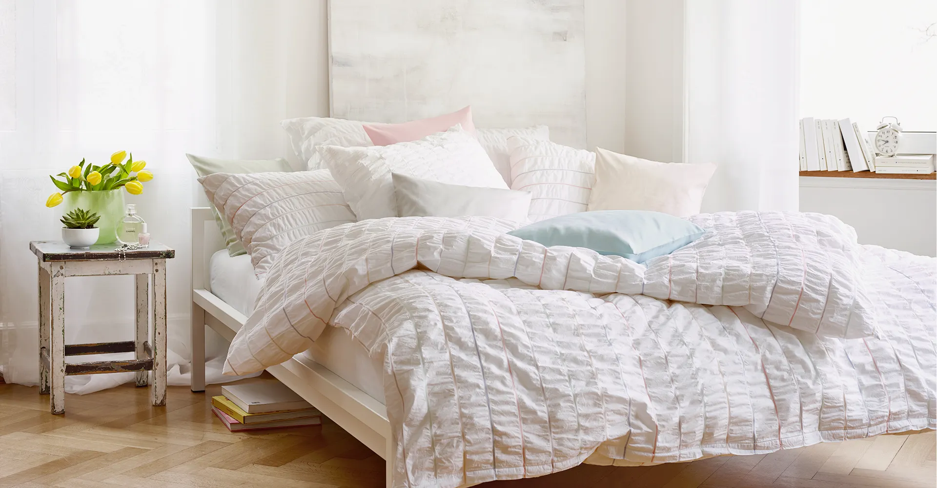 Seersucker Bettwäsche von Schlossberg muss nicht gebügelt werden.