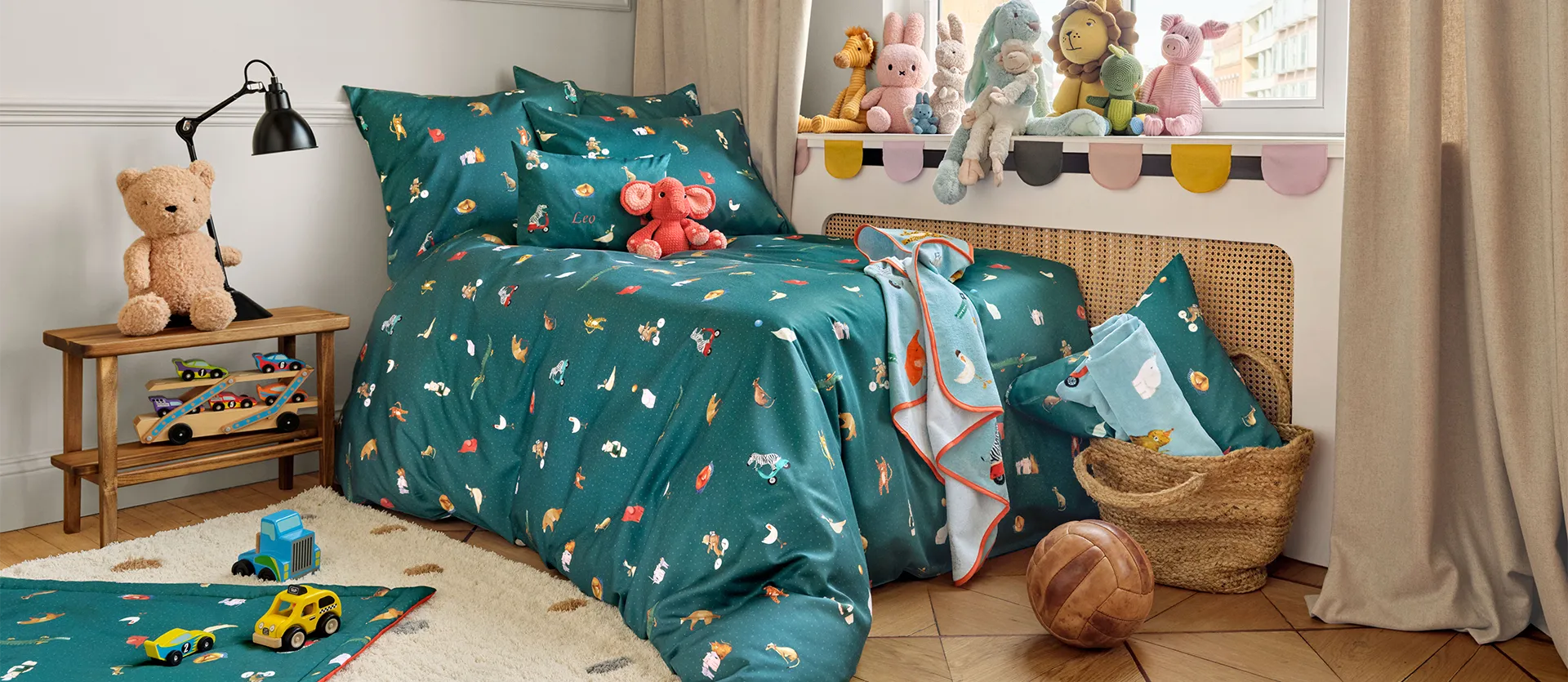Gute-Nacht-Geschichten lesen und dabei dem lustigen Treiben von PARTY LEO zusehen - auf dem Zierkissen trifft sich das liebste Kuscheltier mitsamt seinen tierischen Freunden zu einer ausgelassenen Party.