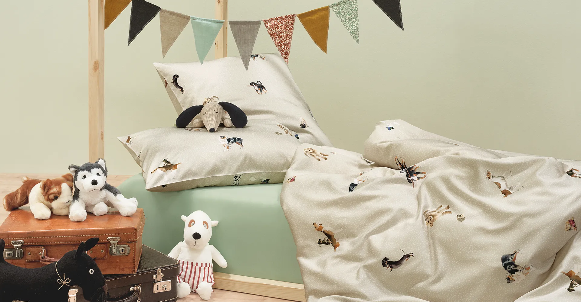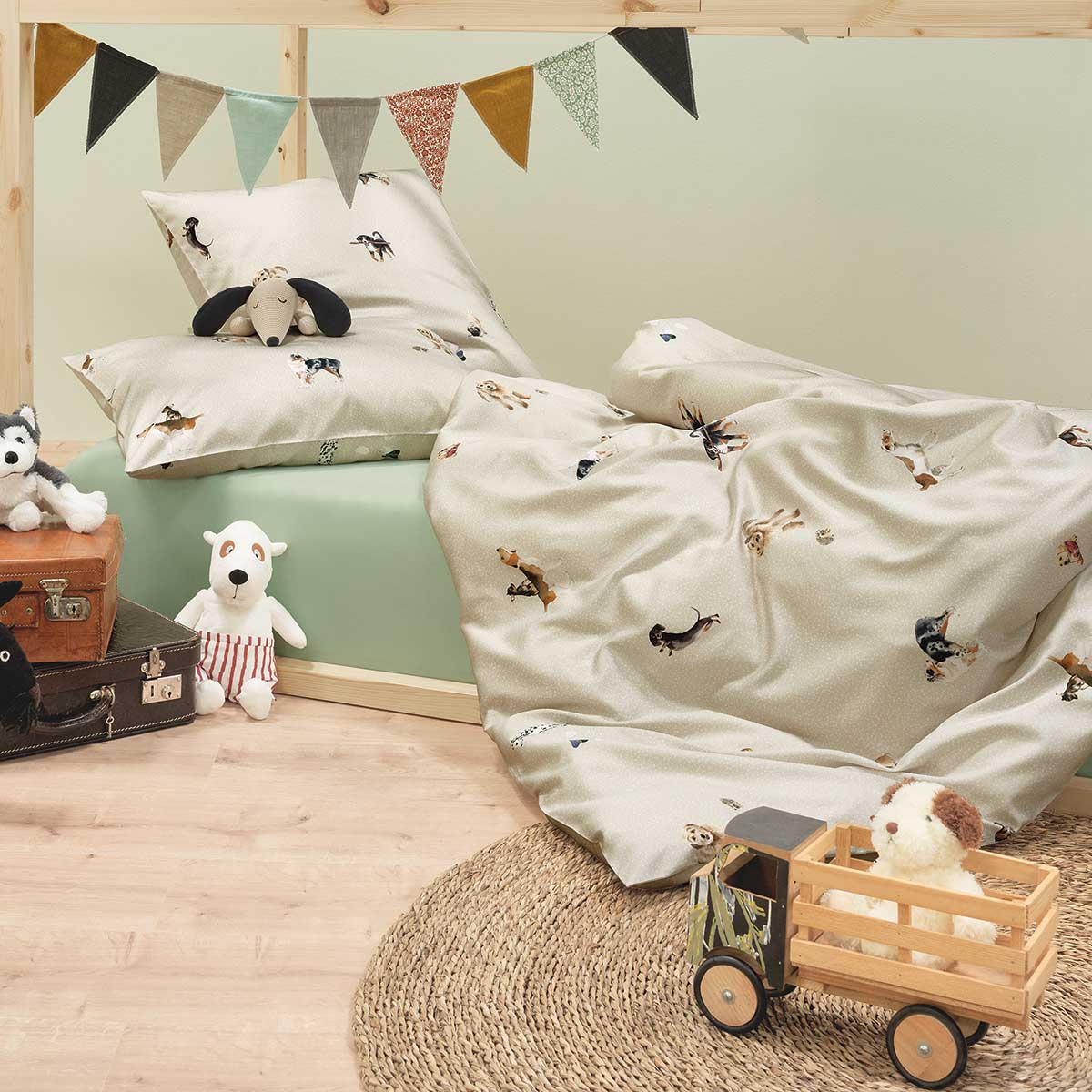 Our bed linen design BELLO not only ensures that man’s best friend accompanies you in everyday life, but is also by your side on your trips to dreamland. Various dog breeds and lovingly drawn canine characters greet you, tails wagging joyfully and invariably ready for the next adventure. Invite the motley pack of dogs into your home to guard your sleep and ensure an ultra-charming start to the day.