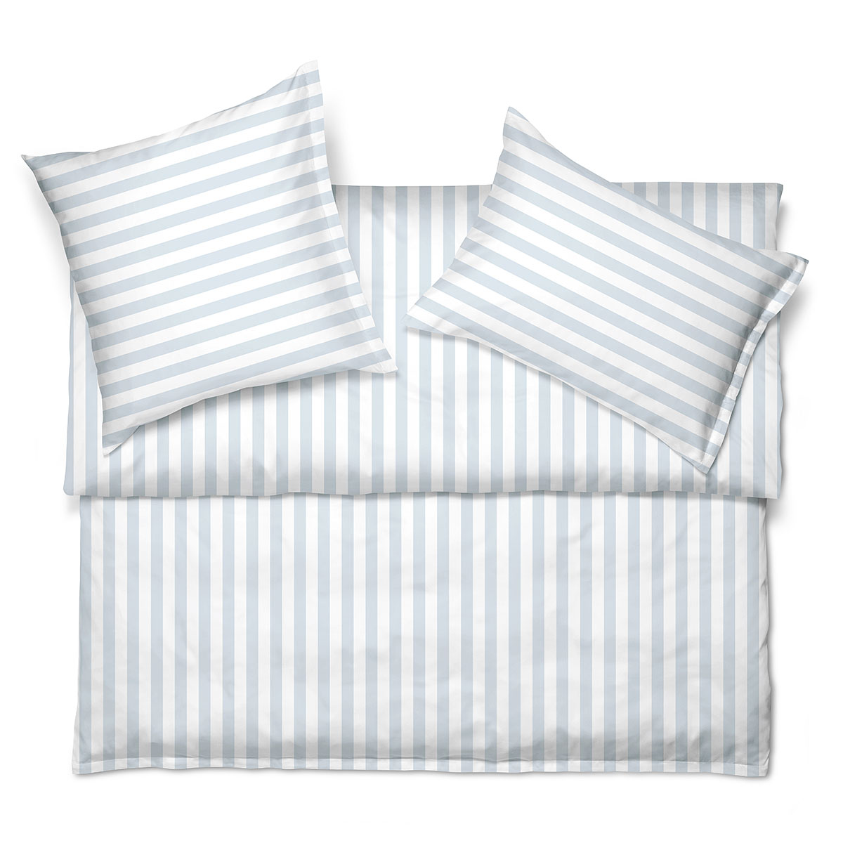 A popular Schlossberg classic, ARIS is truly ground-breaking – in terms of both color and fabric: Block stripes in shades of maritime blue-white, delicate light blue-white and elegant beige-white all create color accents in your bedroom – from subtle to vibrant. With its organic cotton, the design remains invariably sustainable. The timeless striped pattern is the ideal complement to Schlossberg’s signature floral bed linen designs or matching plain colors, depending on season, style or mood.