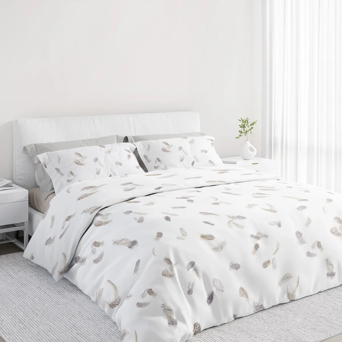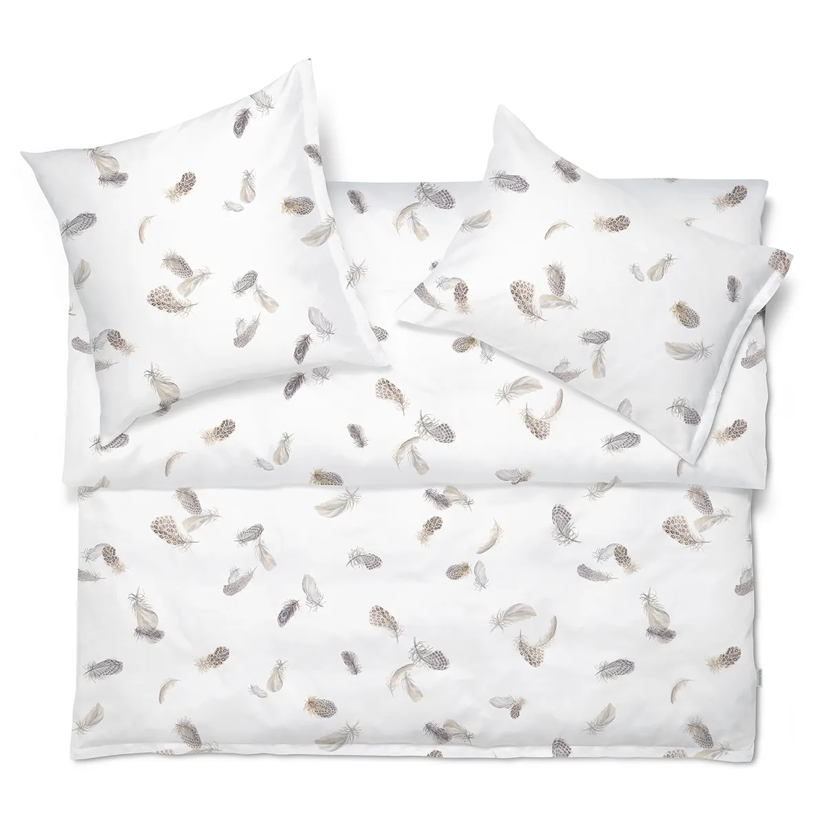 With FEDORA, delicate, filigree feathers in softly patterned shades of brown, gray and white float carefree over the pure white bed linen – the next gust of wind carries them light as a feather up and away into a new dream world, giving every bedroom a harmonious picture of calm, lightness and elegance.