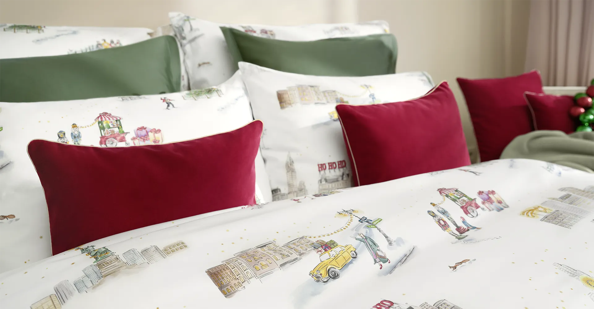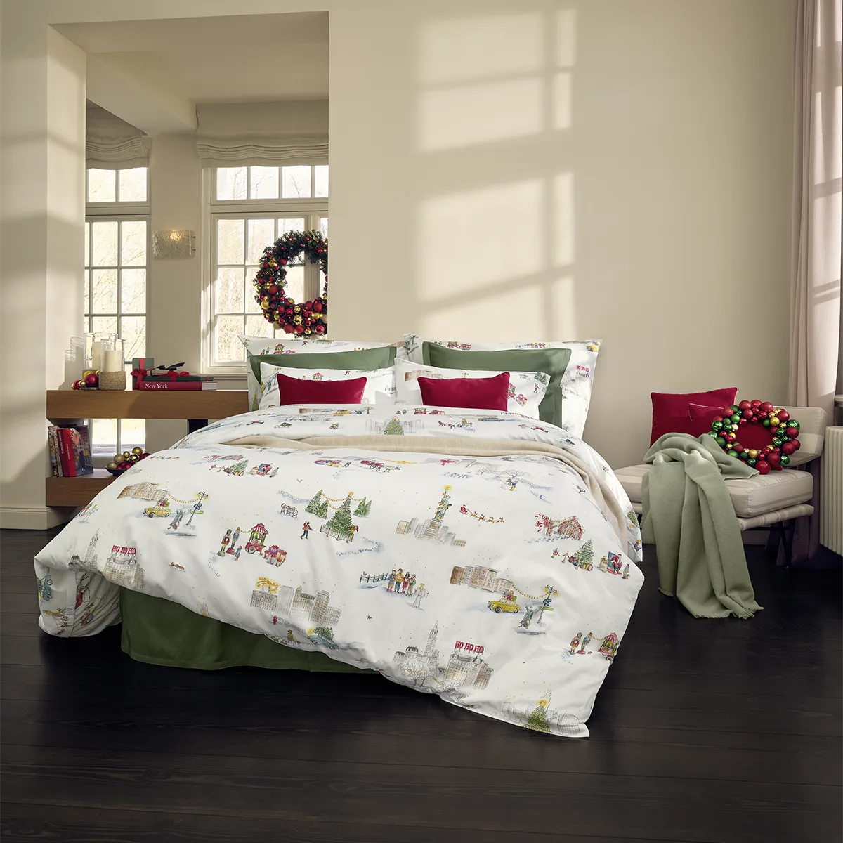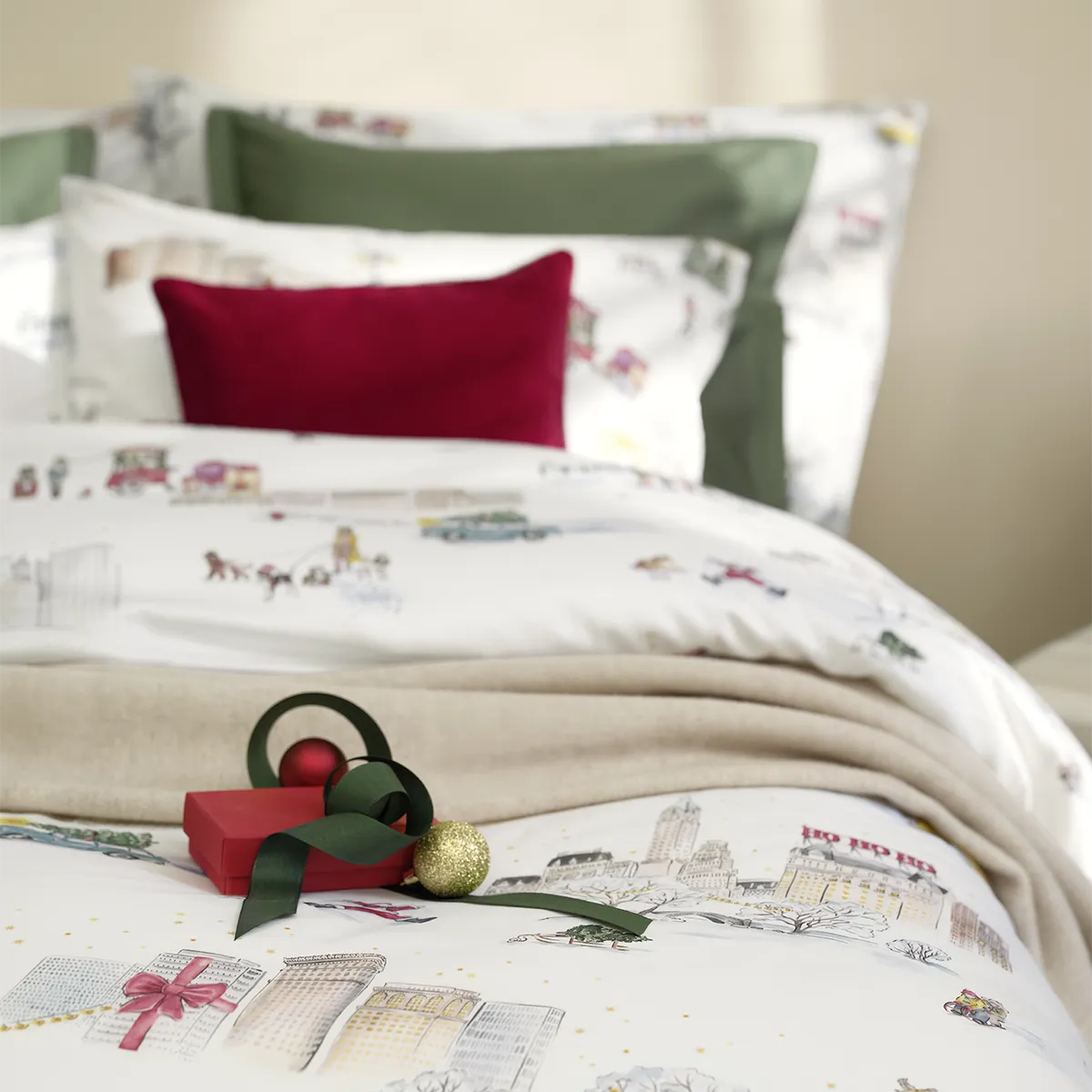 SANTA IN NY is your personal invitation to immerse yourself in a world of anticipation during the first winter months – the detailed design is inspired by countless Christmas films and transforms the enchantingly sparkling metropolis of New York into a magical Christmas world. There is so much to discover, especially during the Advent season: Trudging through the snow in Central Park, children whizzing down the hill on their sledges and building snowmen. Pirouettes are practiced on the ice rink at Rockefeller Center, a choir sings contemplative Christmas carols, the conductor dressed as an angel sets the beat. The Christmas trees are lavishly decorated, the Christmas lights illuminate the city with a warm glow, and even the Statue of Liberty wears a string of lights. In the middle of it all, and not to be overlooked, the Santas are everywhere! They lie in the snow and make a snow angel, listen to the children's wishes, wave from the carriage or fly around the top of the Statue of Liberty with the reindeer. The bed linen SANTA IN NY promises you a new Christmas fairy tale every night.