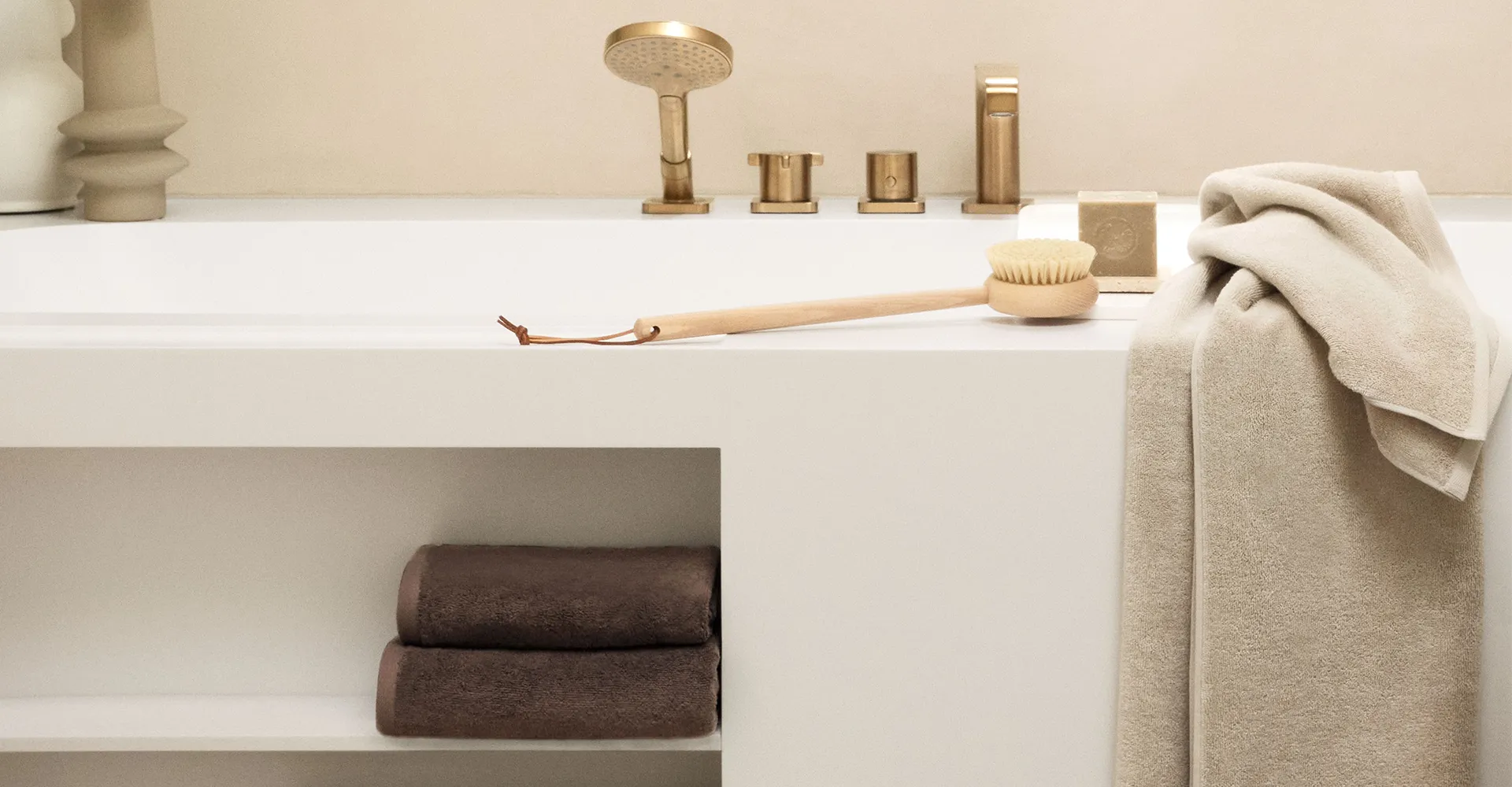 Please note the different care labels for towels, bathrobe and bath mat.