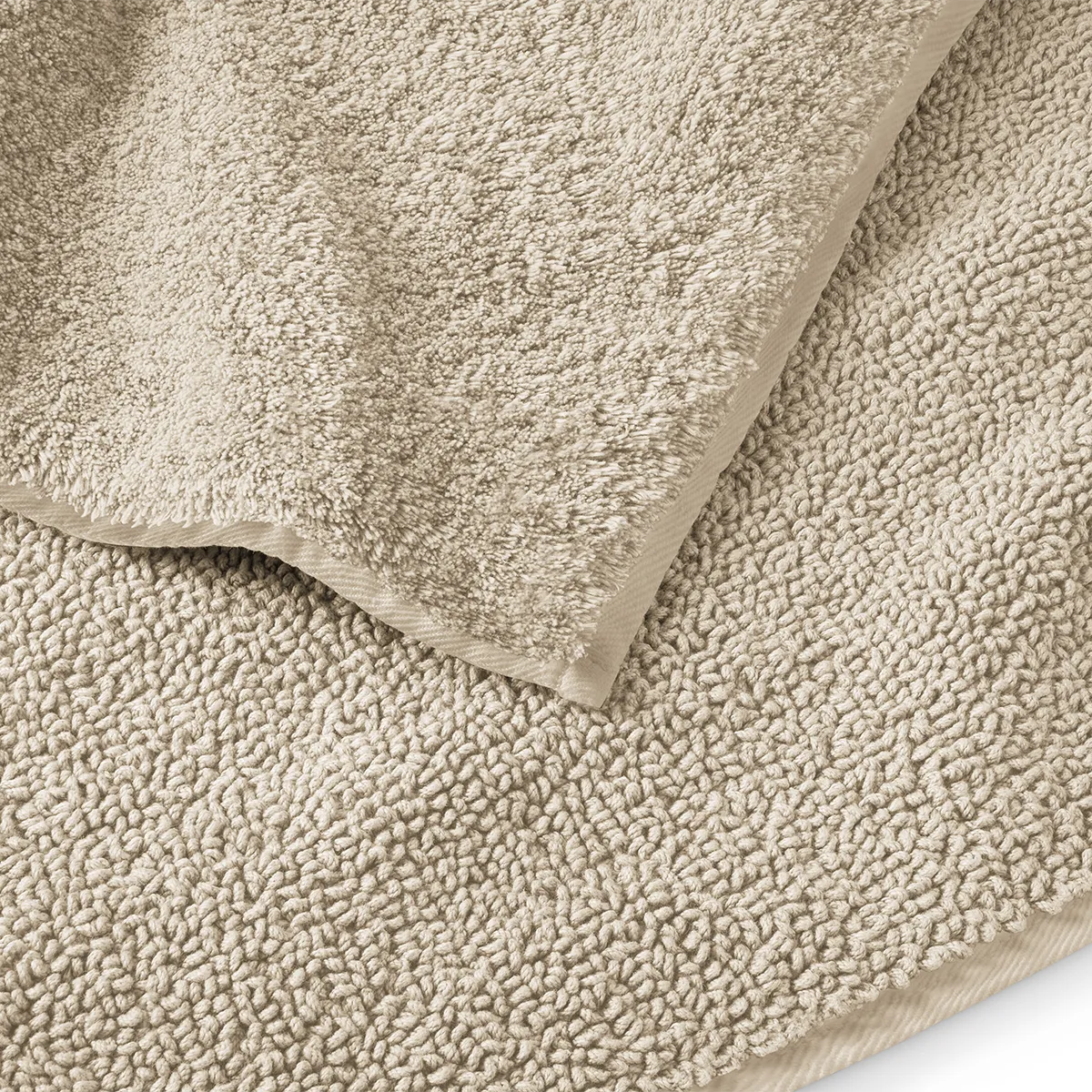 The newly developed COSHMERE GOTS terry toweling from Schlossberg is a faithful companion in all areas of your bathroom – whether you wrap yourself in the large bath towel after a refreshing shower, bury your toes in the fluffy bath rug after a long bubble bath or put a smile on your own face and that of your guests with the hand and guest towels, this terry toweling will impress you time and again with its incomparable softness and extremely high absorbency. Thanks to the terry loops on both sides, it is particularly supple to touch and literally ensures all-round high-quality comfort of wellbeing. In twelve harmonious and versatile colors and different sizes, COSHMERE GOTS terry toweling offers you a wide selection to meet your own needs and furnishing requirements. What's more, this terry toweling is always a sustainable choice thanks to its GOTS certification and its production from 100% organic cotton.