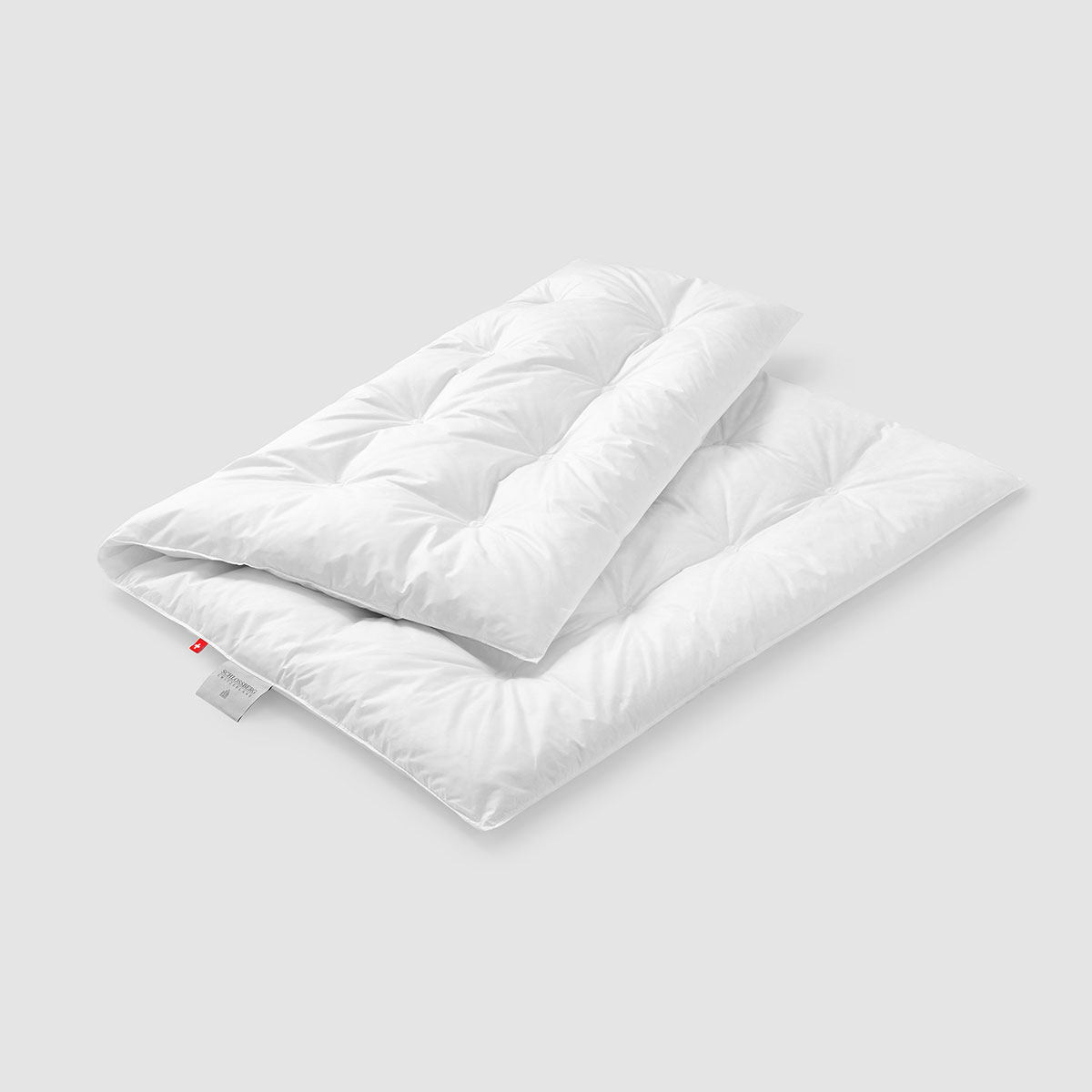 Our LUCA duvet is made of 90% new, pure, white, European goose down and 10% feathers. The fluffy goose down used in this duvet guarantees a high degree of comfort, whilst ensuring that moisture is wicked away yet keeping in the warmth. The quilting technique gives the duvet a special puffiness, while the hydrophilic cotton batiste cover is extremely breathable. Recommended for children of three years and above. Swiss Made.