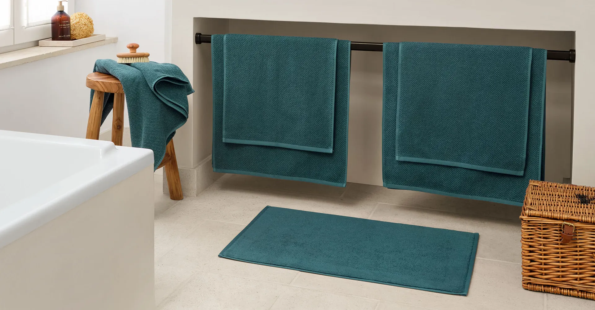 Please note the different care labels for towels, bathrobe and bath mat.