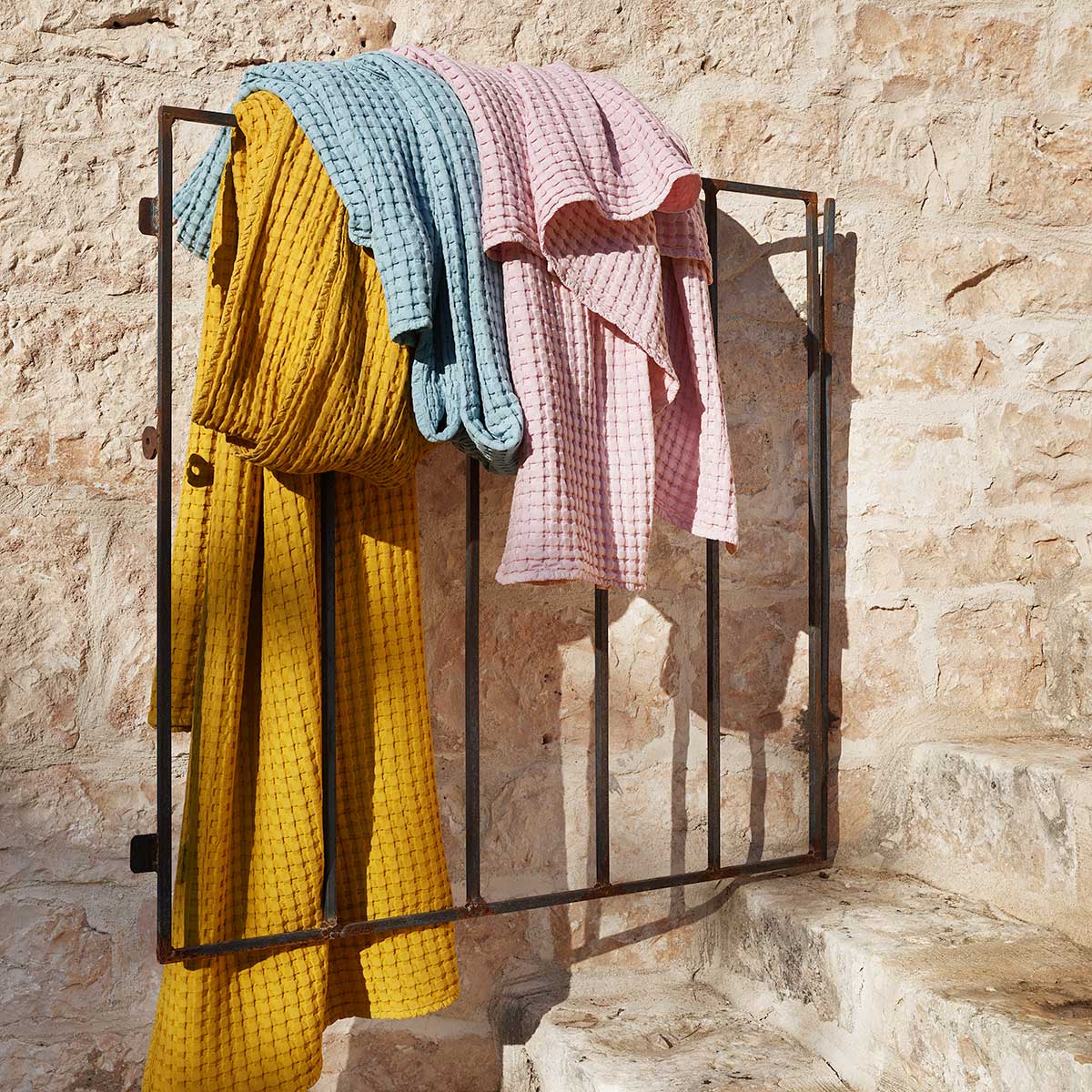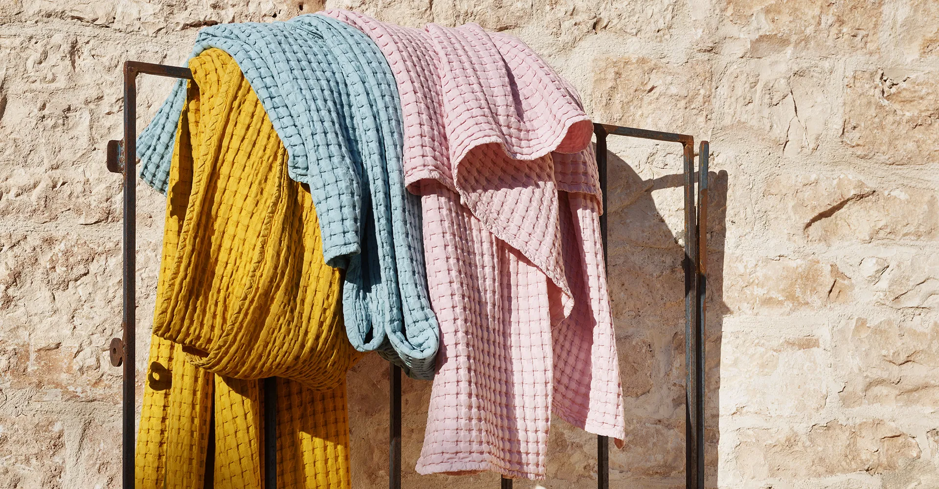 Stay waffle plaid made of pure cotton has a particularly soft look due to its textured, 3-D effect and is available in the colors stone and cloud. The plaid fits with a youthful, urban living style and ensures a simple look.